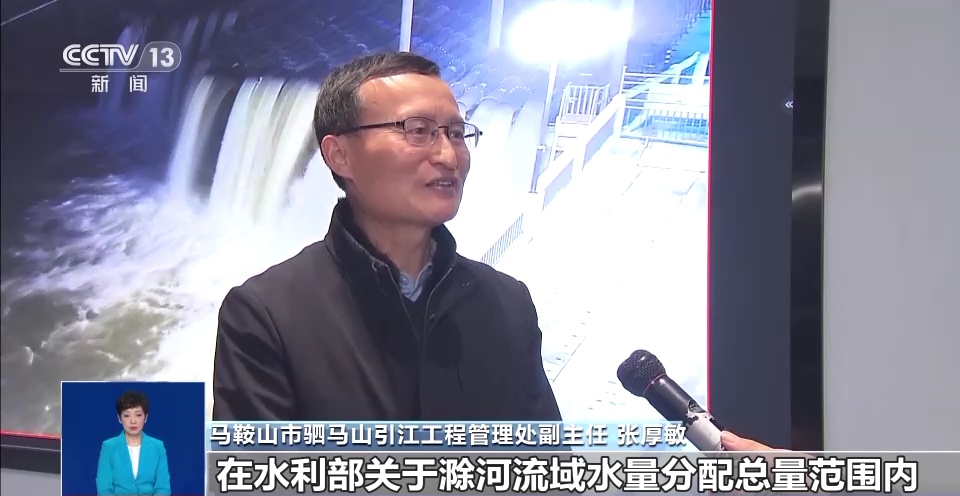 马鞍山市驷马山引江工程管理处副主任 张厚敏✿◈◈:在水利部关于滁河流域水量分配总量范围内✿◈◈,我们的人员和机组24小时都在工作状态✿◈◈,每天从长江提水将近200万方✿◈◈,保障滁河流域合肥市✿◈◈、滁州市城市用水需求✿◈◈,同时我们加强沿河水资源的监管✿◈◈,保证水资源有效使用和用水安全✿◈◈。